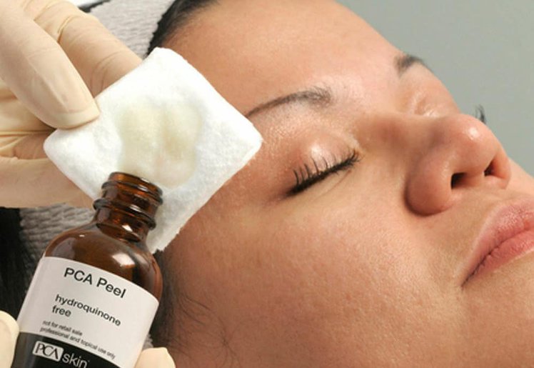 - Chemische Peeling: Het behandelen van de huid met een chemische stof (o.a. Glycolzuur en/of Salicylzuur, Trichloorazijnzuur en Melkzuur), die de oppervlakkige huidcellen doet afsterven. Afhankelijk van de huidconditie, d.w.z. de aanwezige huid(verouderings)problemen en de gevoeligheid van de huid, kunnen krachtige en mildere peelingen toegepast worden. Voorafgaand wordt besproken welke peeling geschikt is voor uw huid.